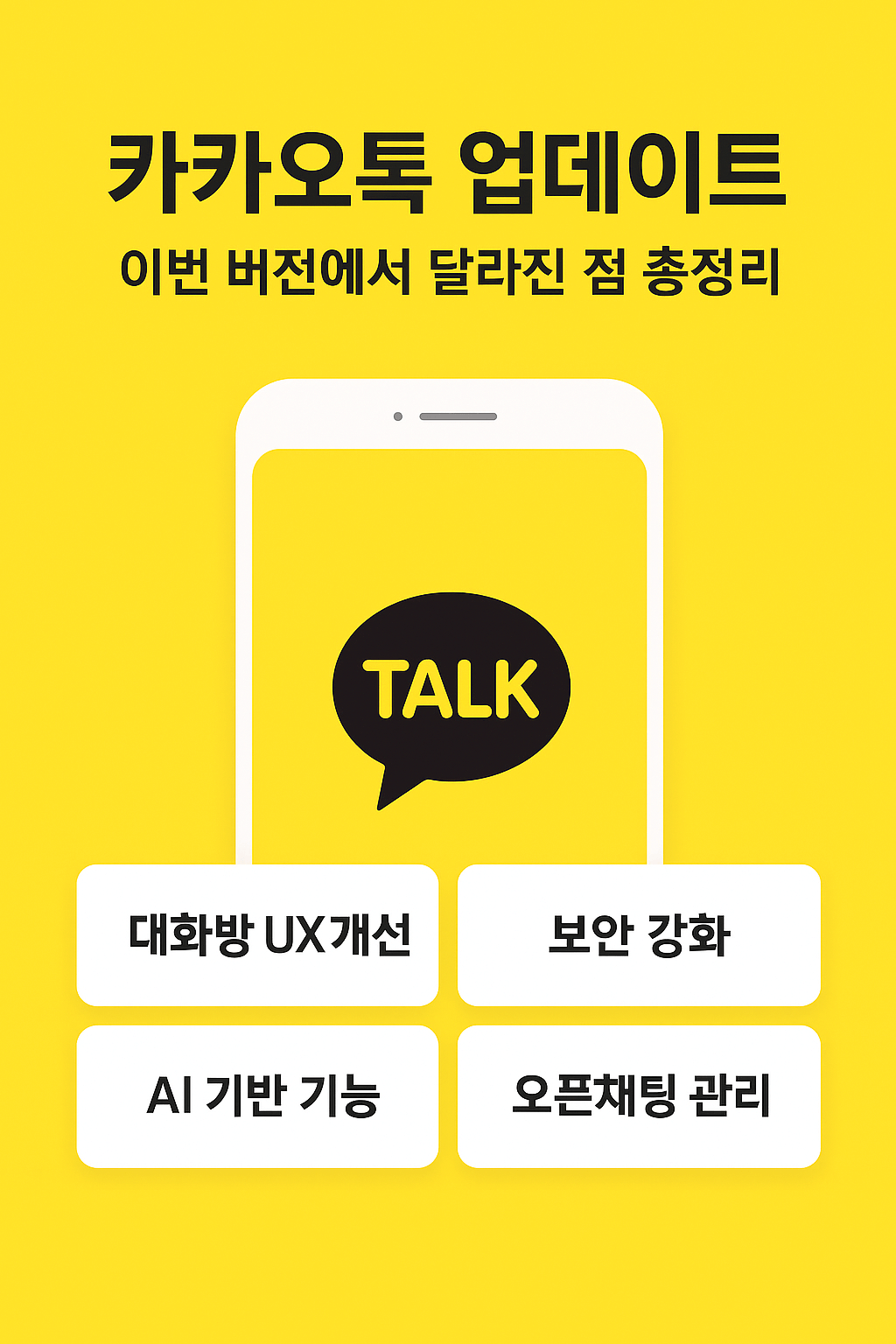 카카오톡은 국내에서 가장 많이 사용되는 메신저 앱으로, 주기적인 업데이트를 통해 편의성 개선, 보안 강화, 새로운 기능 추가를 진행하고 있습니다. 이번 업데이트는 채팅 환경 개선, 보안성 강화, AI 기능 도입이라는 세 가지 키워드로 정리할 수 있습니다.
