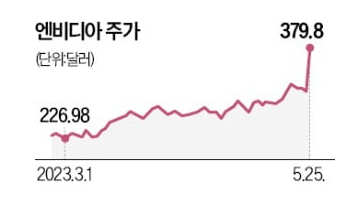지난 25일(현지시간) 미국 나스닥시장에서 엔비디아 주가는 전날보다 24.37% 급등한 379.8달러에 거래를 마치며 사상 최고가를 찍었습니다.