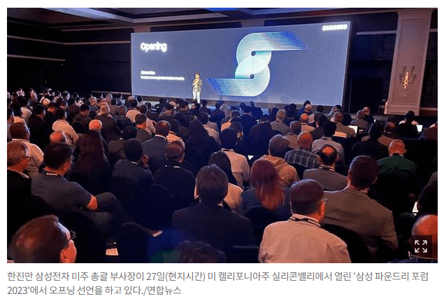 한진만 삼성전자 DS부문 미주 총괄(부사장)은 이날 “파운드리 사업은 호텔과 비슷해, 좋은 레스토랑과 객실(기술)도 있어야 하지만 훌륭한 컨시어지(다양한 요구를 들어주는 서비스)와 언제나 예약이 가능한 수용력(생산능력)도 중요하다”고 했습니다.