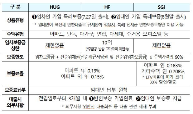 후속 세입자가 자신의 보증금을 보호받을 수 있도록 전세보증금 한도가 없고 세입자가 가입(보증료는 집주인이 대납)하는 상품을 출시합니다. 집주인이 가입할 수 있는 상품은 8월에 출시됩니다.