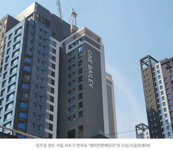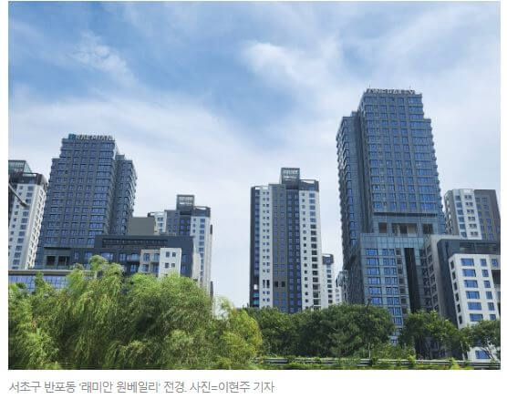 ‘래미안 원베일리’의 입주가 내달 시작되면 당분간 ‘아크로 리버파크’의 뒤를 이어 ‘반포 대장주’를 이어받을 전망입니다. 지하 4층∼지상 최고 35층, 23개 동, 전용 46∼234㎡ 총 2990가구로 지어졌습니다.