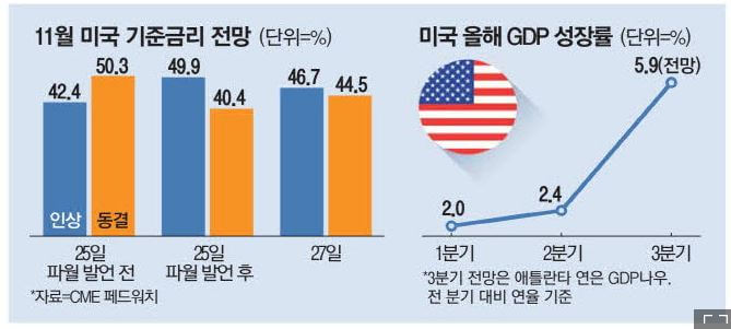 시장에서는 11월 기준금리 인상 가능성이 부상한 건 사실이지만 실현 여부는 두고 봐야 한다는 의견도 만만찮습니다. 데이터를 기반으로 회의마다 기준금리 인상과 동결 여부를 결정한다는 연준의 원칙이 바뀌지 않았기 때문입니다.